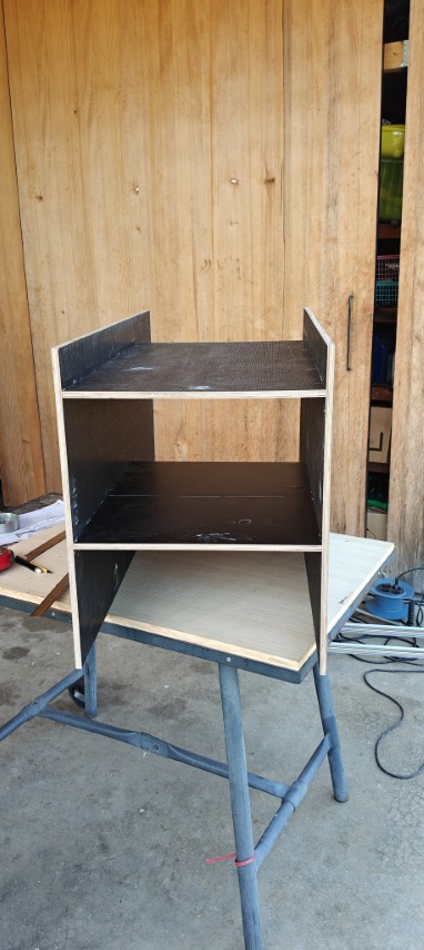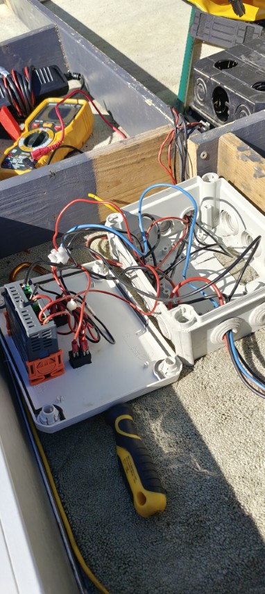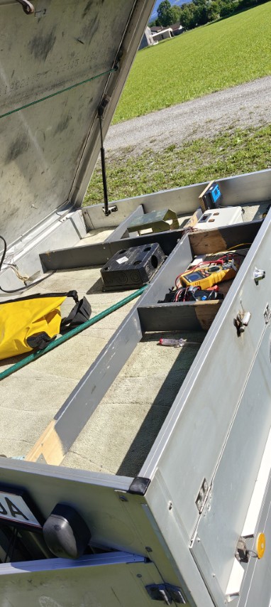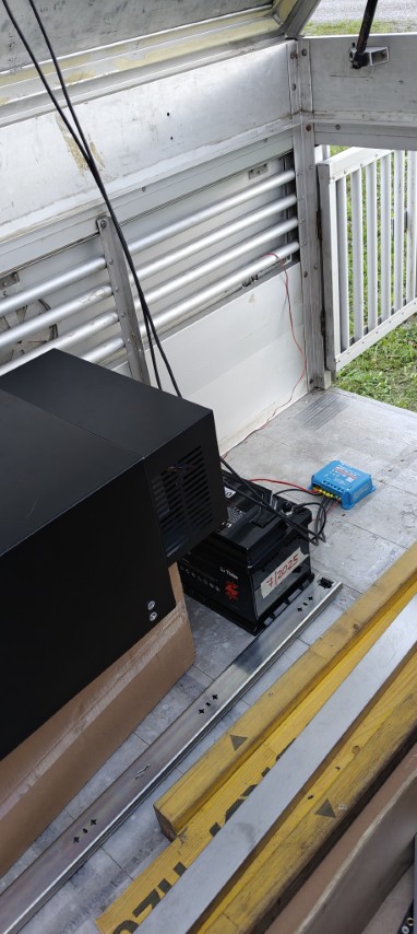 - oben integrierte Kontrollpaneele für Wechselrichter, Solarladeregler,