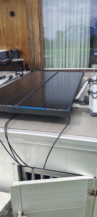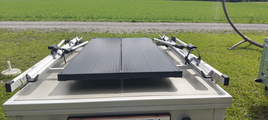 bei Nutzung des Dachzeltes erfolgt die Stromversorgung über ein externes Solarpanel