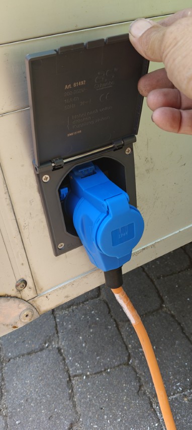 - Landstrom: Anschluss über integrierte CEE-Steckdose
