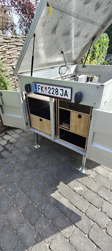 energieautarken Campinganhänger mit integrierter Küche, Frischwasserversorgung und modularen